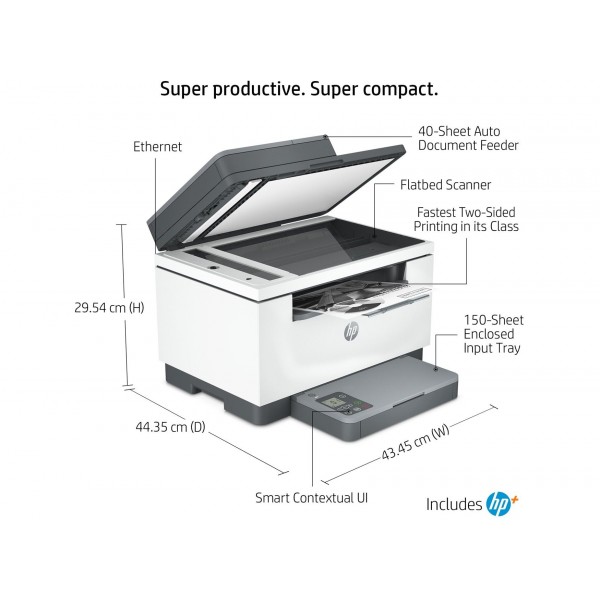 | A high-productivity MFP with the fastest two-sided printing in its class, an automatic feeder, and the time-saving HP Smart app. Count on a worry-free experience with simplified setup. | |