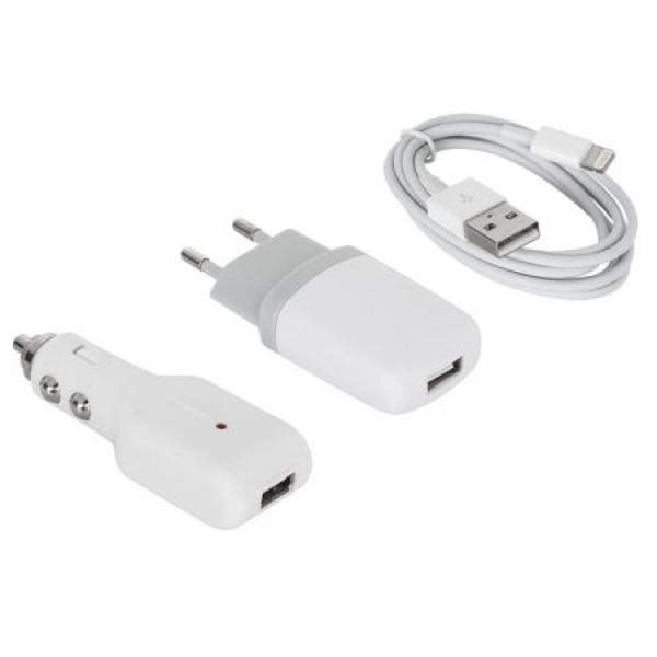 KIT 3 in 1 Alimentator Auto / Retea / Cablu pentru iPhone 5/6