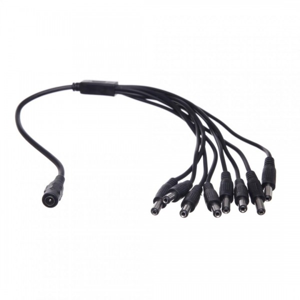 Cablu Spliter de alimentare splitter cu 8 iesiri pentru 8 camere desupraveghere; Contine: 1 bucata mufa alimentare mama; 8 bucati mufa alimentare tata
